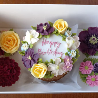 These Bento box sets are a great idea for a special gift for any occasion! They consist of a 5 inch, 2 layer main cake and a choice of 4, 5 or 8 cupcakes. The message on the main cake can be adapted for birthdays, anniversaries and many other occasions.